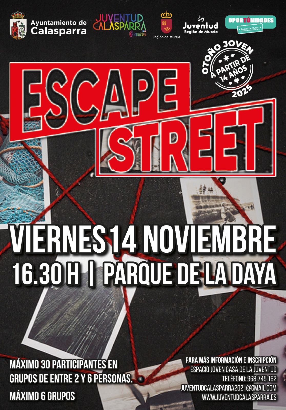 Inscripciones: en el Espacio Joven – Casa de la juventud. En juventudcalasparra2021@gmail.com y en el 968 745 162.